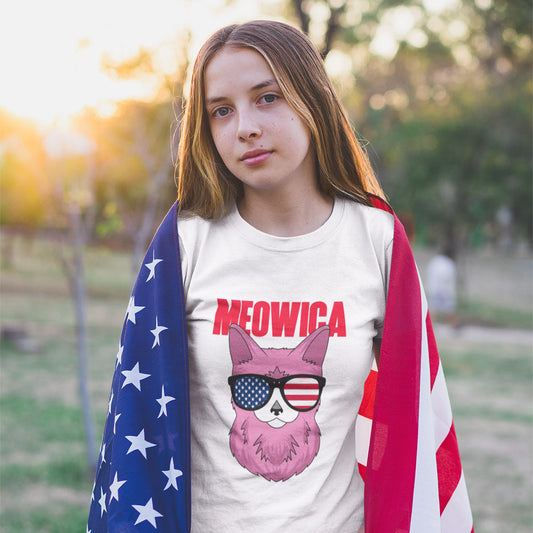 MEOWICA Cat Themed With Usa Flag Unisex Style T-Shirt